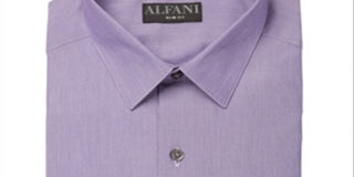 Alfani Men's Line Dot Dobby Slim Fit Button Down Dress Shirt Purple Size XL