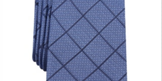 Alfani Men's Neck Tie Trellis Geometric Skinny Slim Silk Blue One Size