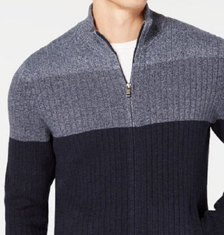 Alfani Men's Ombre Colorblocked Ribbed Knit Full Zip Cardigan Blue Size XXX-Large