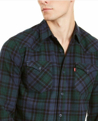 Levi's Men's Plaid Collared Work Dress Green Size Large