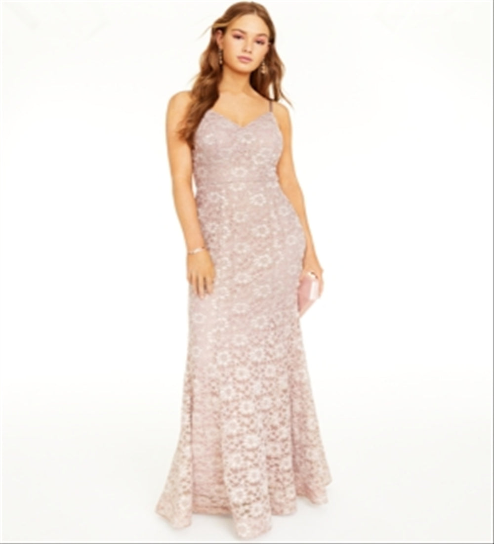 BCX Women's Lace Floral Spaghetti Strap V Neck Full Length Formal Mermaid Dress Brown Size 7