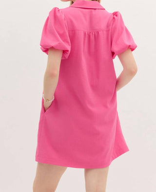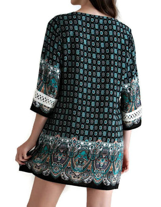 Entro - Boho-inspired Short Puff Sleeve Ruffle Hem Mini Dress