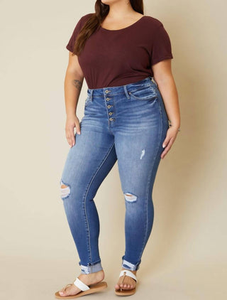 Kancan - High Rise Button Fly Ankle Skinny Jeans - Plus