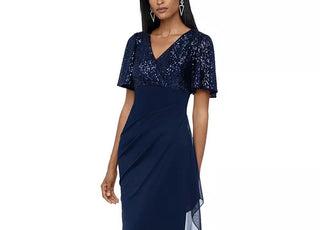 XSCAPE Women's Petite Sequined A-Line Gown Navy Size 4 P