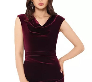XSCAPE Women's Petite Drape-Front Velvet Gown Lt/Pas Purple Size 8
