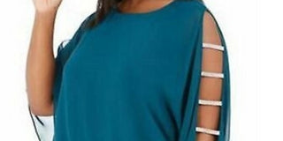 MSK Women's Rhinestone Trim Blouson Top Green Size 1X