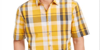 Alfani Men's Printed Collar Button Down Shirt Yellow Size Medium