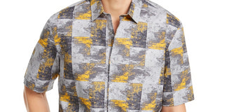 Alfani Men's Printed Shirt -Treasure Gold Yellow Size Medium