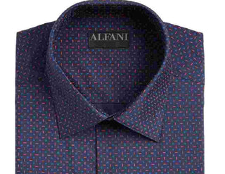 Alfani Men's Printed Collared Slim Fit Stretch Dress Shirt Navy Size 16.5X32-33