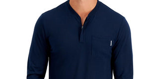 Alfani Men's Quarter Zip Henley Shirt Blue Size X-Large