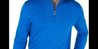 Alfani Men's Quarter-Zip Ribbed Placket Sweater Primary Blue Size Extra Large
