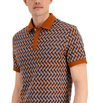 Alfani Men's Scala Geo Jacquard Polo Shirt Brown Size X-Large
