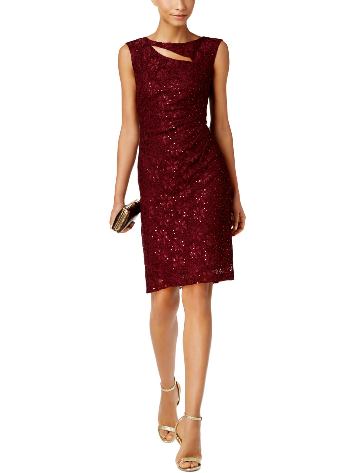Connected Women's Sequined Lace Cutout Sheath Dress Red Size 10