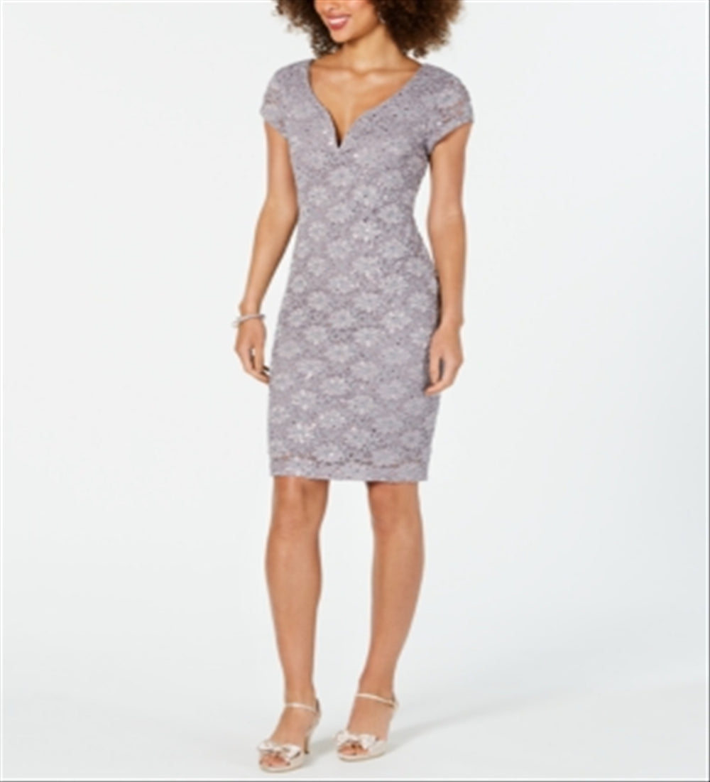 Connected Women's Sequined Lace Sheath Dress Purple Size 8