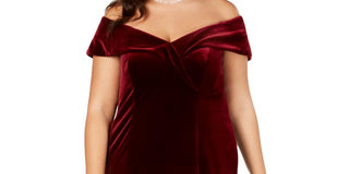 Xscape Women's Plus Velvet Off the Shoulder Evening Dress Purple Size 18W