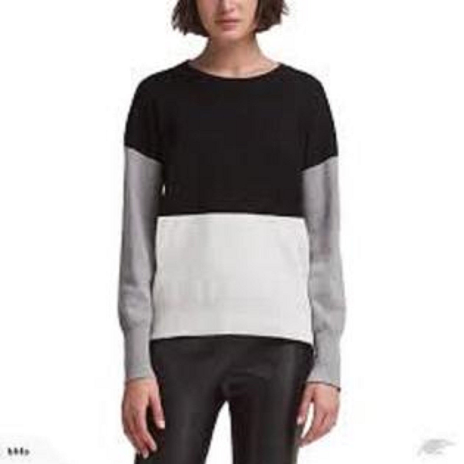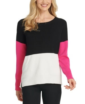 DKNY Women's Colorblock Ribbed Trim Crewneck Sweater Black Size S