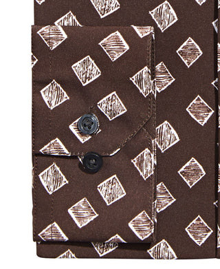 Alfani Men's Slim Fit 4 Way Stretch Geo Print Dress Shirt Beige Size 32X33