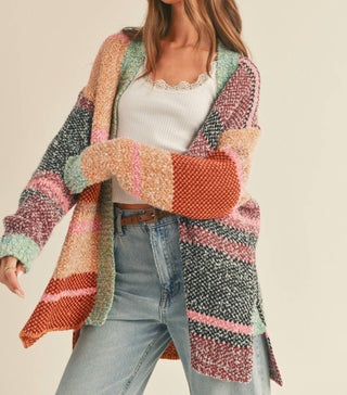 &Merci - Multi Stripe Smocked Bodice Layered Midi Dress
