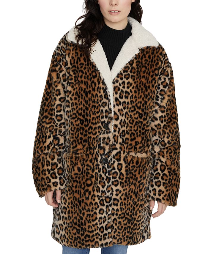 Sanctuary Women's Faux Animal Print Blazer Coat Black Size Medium
