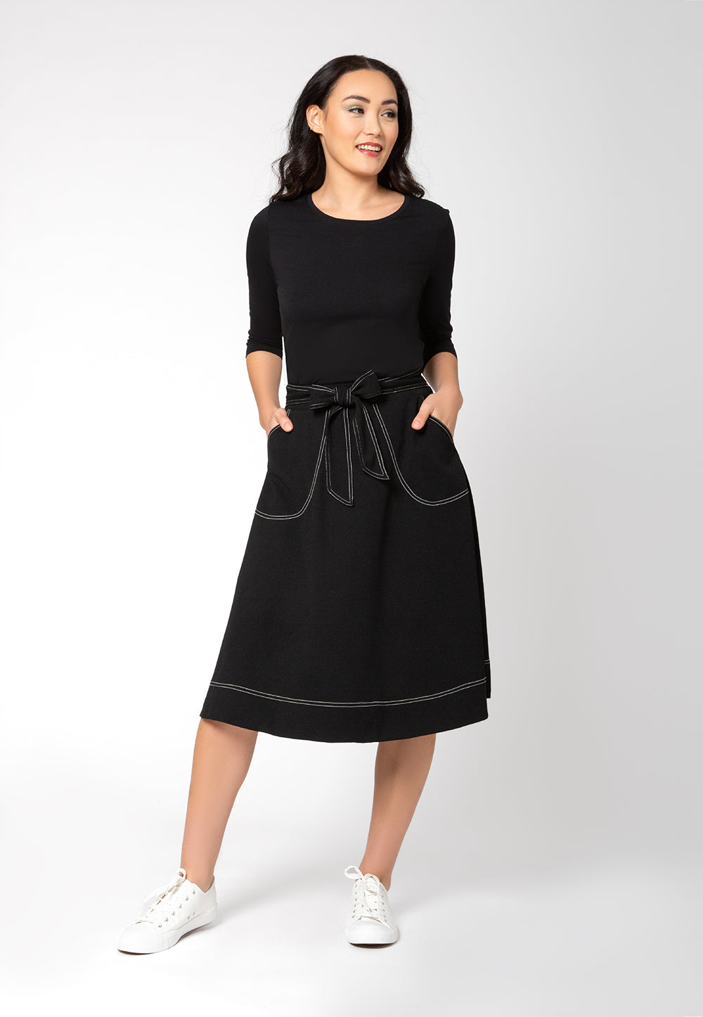 Leota Women's Mindy Belted A Line Skirt Black Size 1X