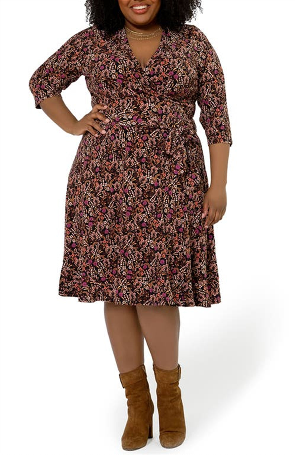 Leota Women's Perfect Faux Wrap Dress Brown Size 3X