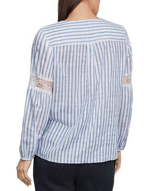 BCBGMAXAZRI Women's Cotton Striped High Low Top Blue Size Large
