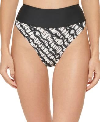 DKNY High-Waist Bikini Bottoms Black White Medium