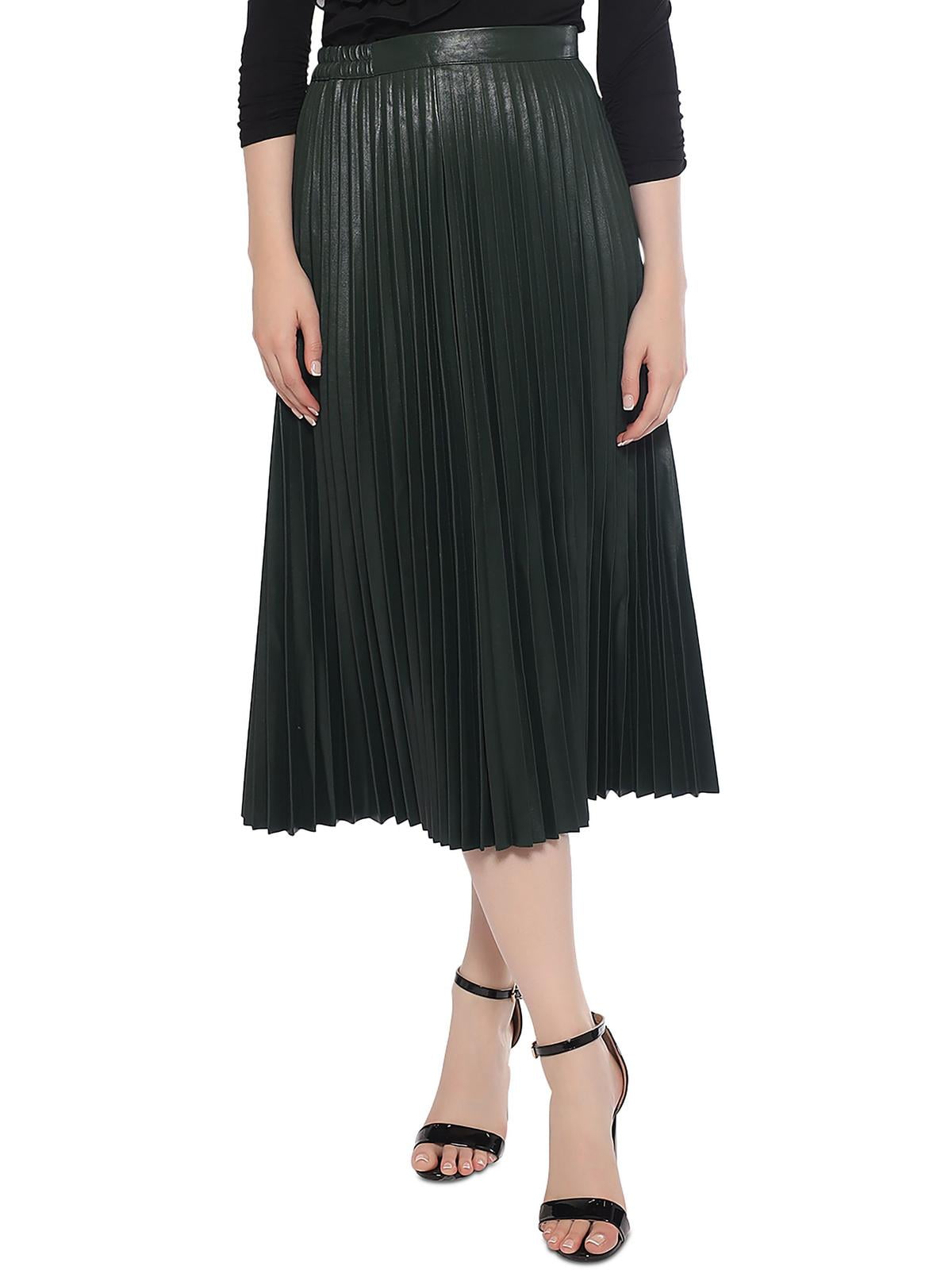 Gracia Faux Leather Pleated Midi Skirt Size XL