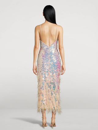 Loveshackfancy - Miriana Feather-trimmed Sequin Slip Midi Dress
