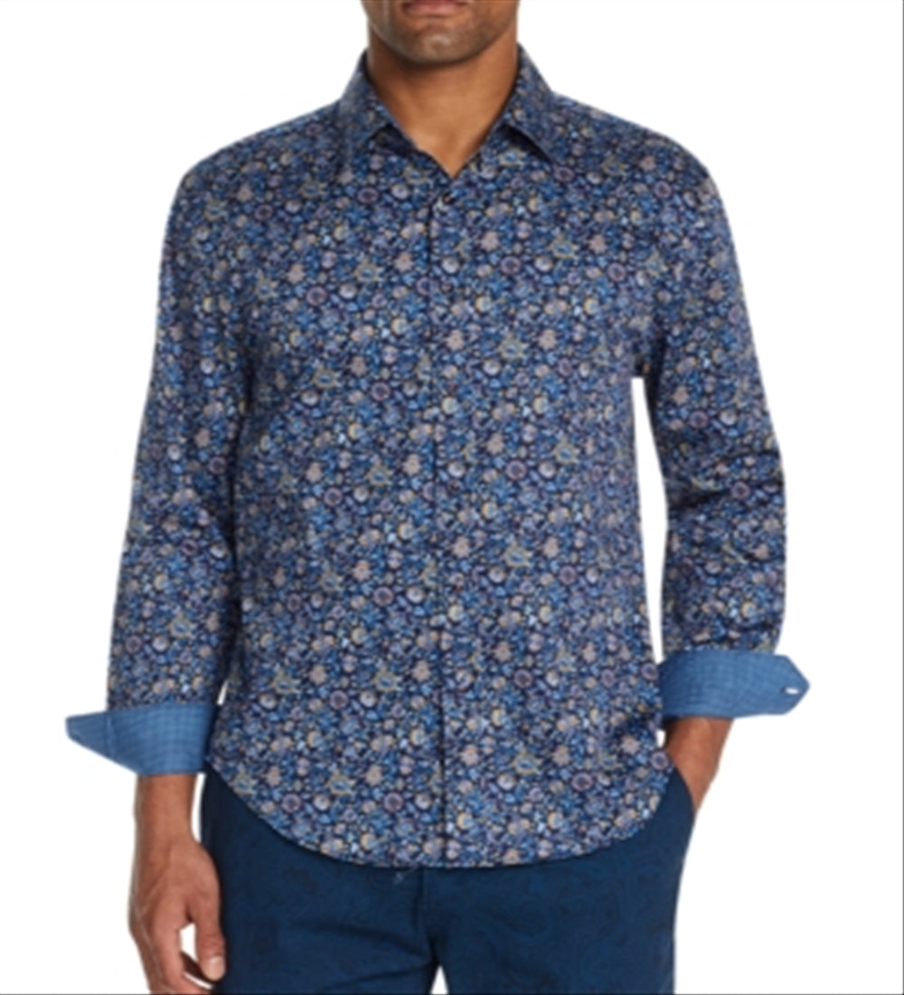 Tallia Men's Sequin Print Performance Button Down Shirt Gray Size Medium