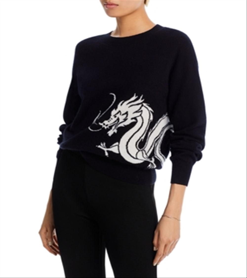 Aqua Cashmere Wrap Around Dragon Intarsia Crewneck Cashmere Sweater Black Size S