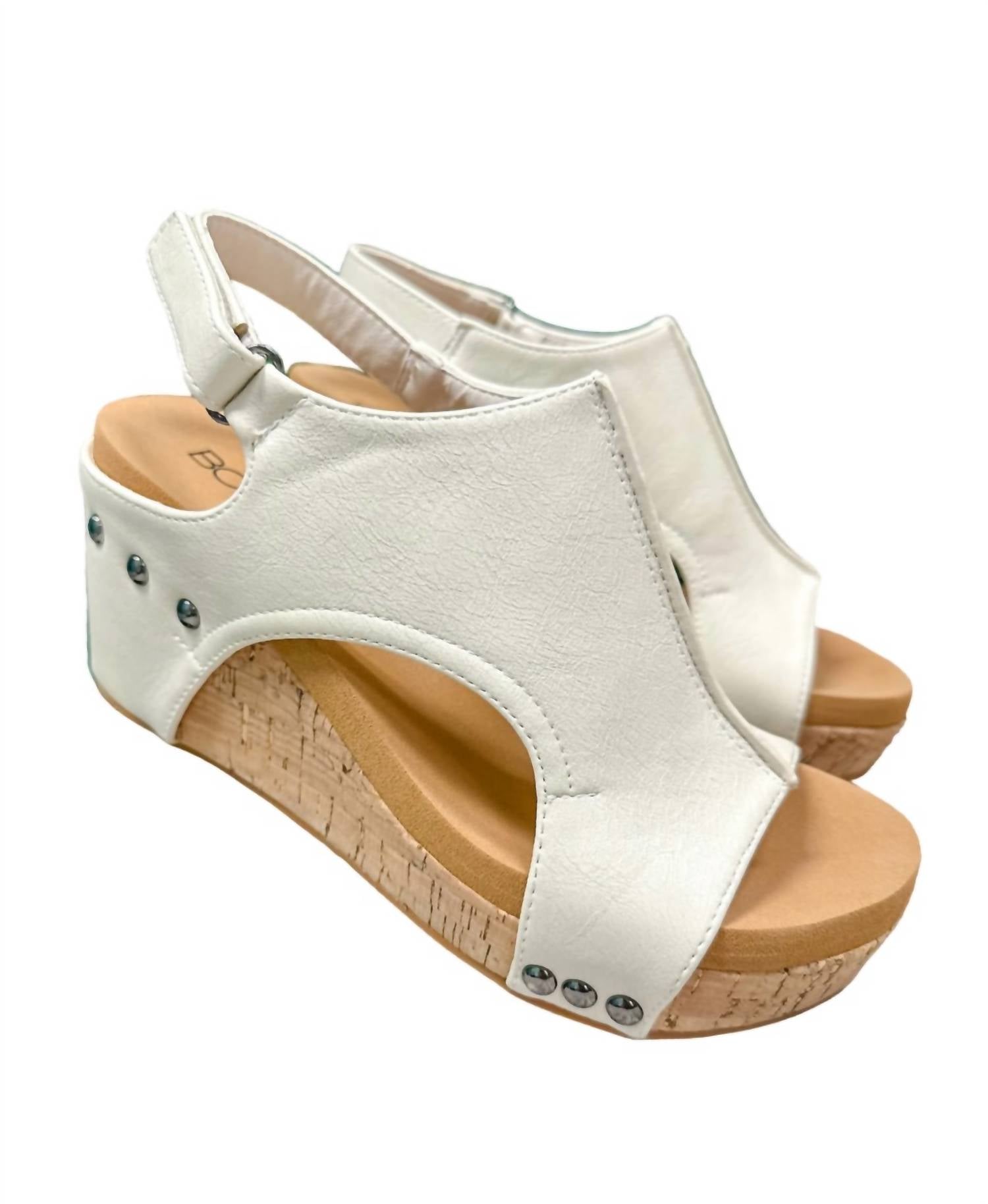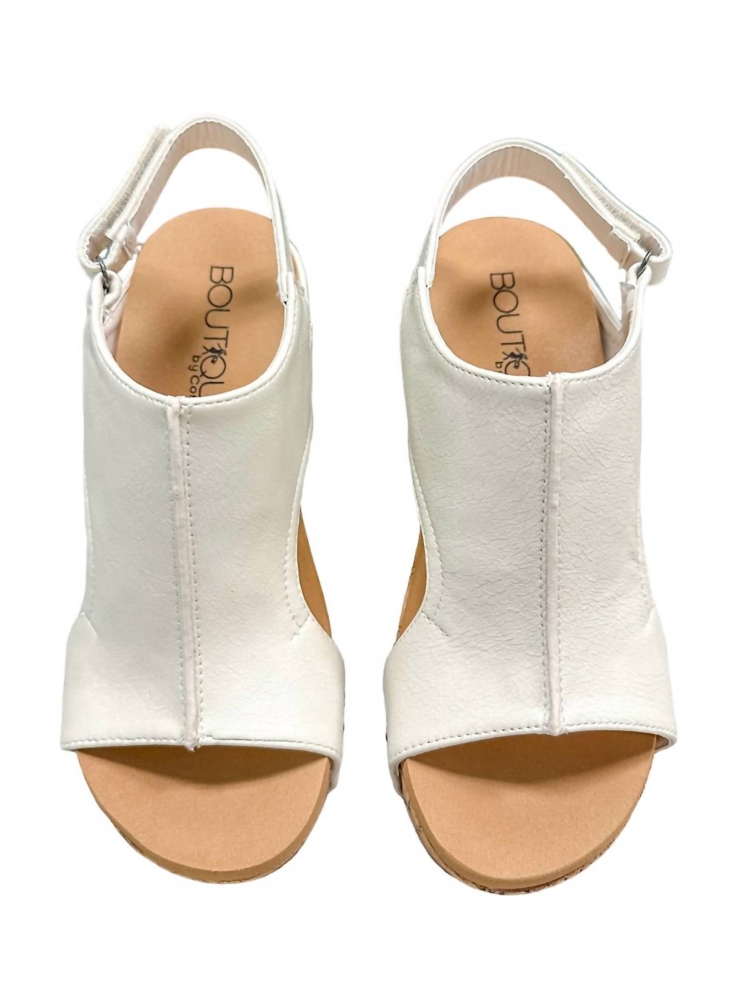 Timeless wedges that will be relevant season after season. These features a trendy faux leather upper with a hook and loop closure ensures a secure fit. A lightly cushioned footbed, followed by a cork platform. Faux leather upper. Adjustable closure. EVA midsole. Cushioned footbed. 3 inch wedge heel.