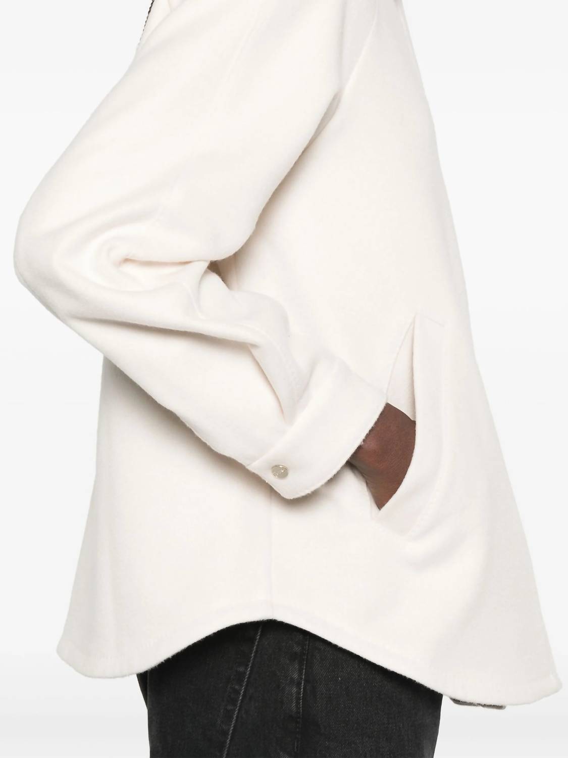 Elevate your winter wardrobe with the Herno Virgin Wool Shirt Jacket in a stylish blush beige shade. This solid, long-sleeve jacket is crafted from 100% Virgin Wool with a 100% Viscose lining, offering both warmth and luxury. Made in Italy, it features a front and cuff press-stud fastening, complemented by a chest flap pocket and two side welt pockets for practicality. The jacket's care instructions require dry cleaning only, ensuring it remains in pristine condition.