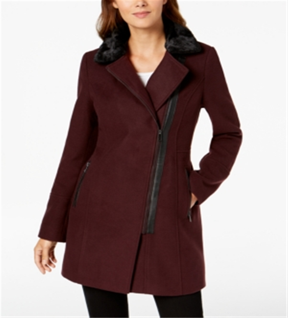 Maralyn & Me Juniors' Faux-Fur-Collar Asymmetrical Coat Red Size XS