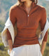 Introducing the Demi Half Zip Knit Sweater by VARLEY, a stylish addition to your winter wardrobe in a warm Tortoise Shell hue. This women's garment features long sleeves and a zip closure, showcasing a textured design with placement rib detailing for a contemporary touch. Crafted from a luxurious blend of 44% Viscose, 28% Nylon, and 28% Polyester, it offers comfort and elegance. Care: Machine wash with similar colors. Garment Length: 24.8 inches. Front Length: 24.8 inches. Sleeve Length: 23 inches.
