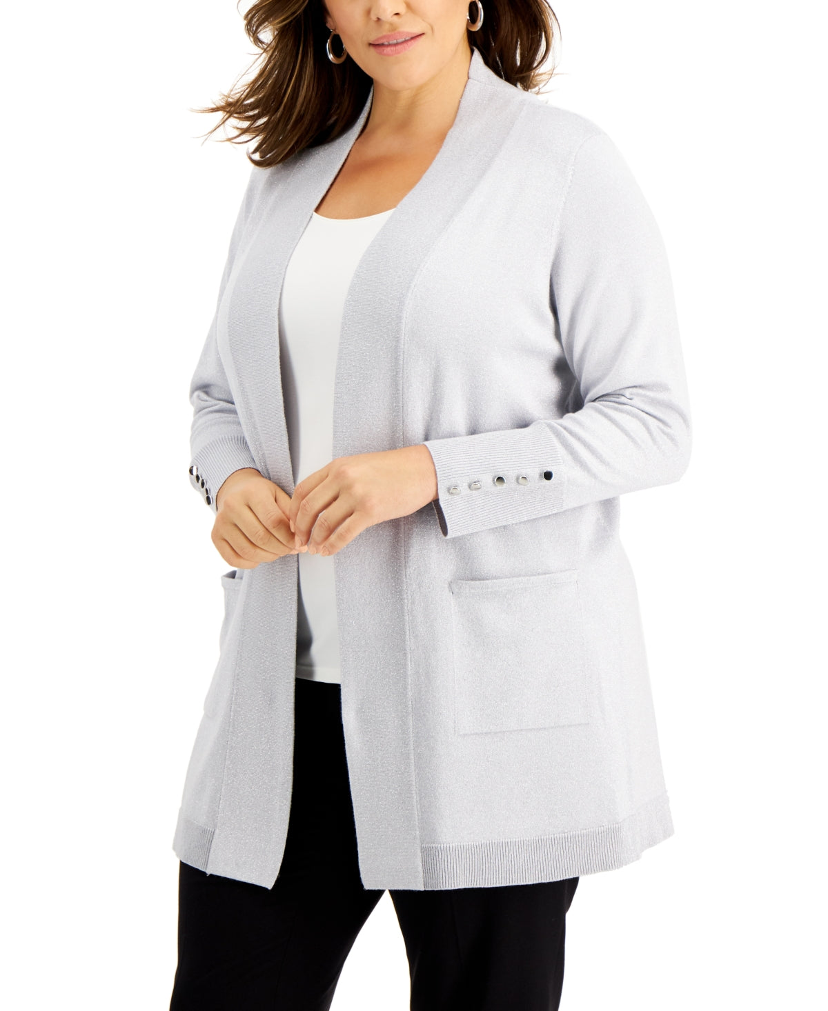 JM Collection Women's Button Sleeve Lurex Cardigan Gray Size 1X