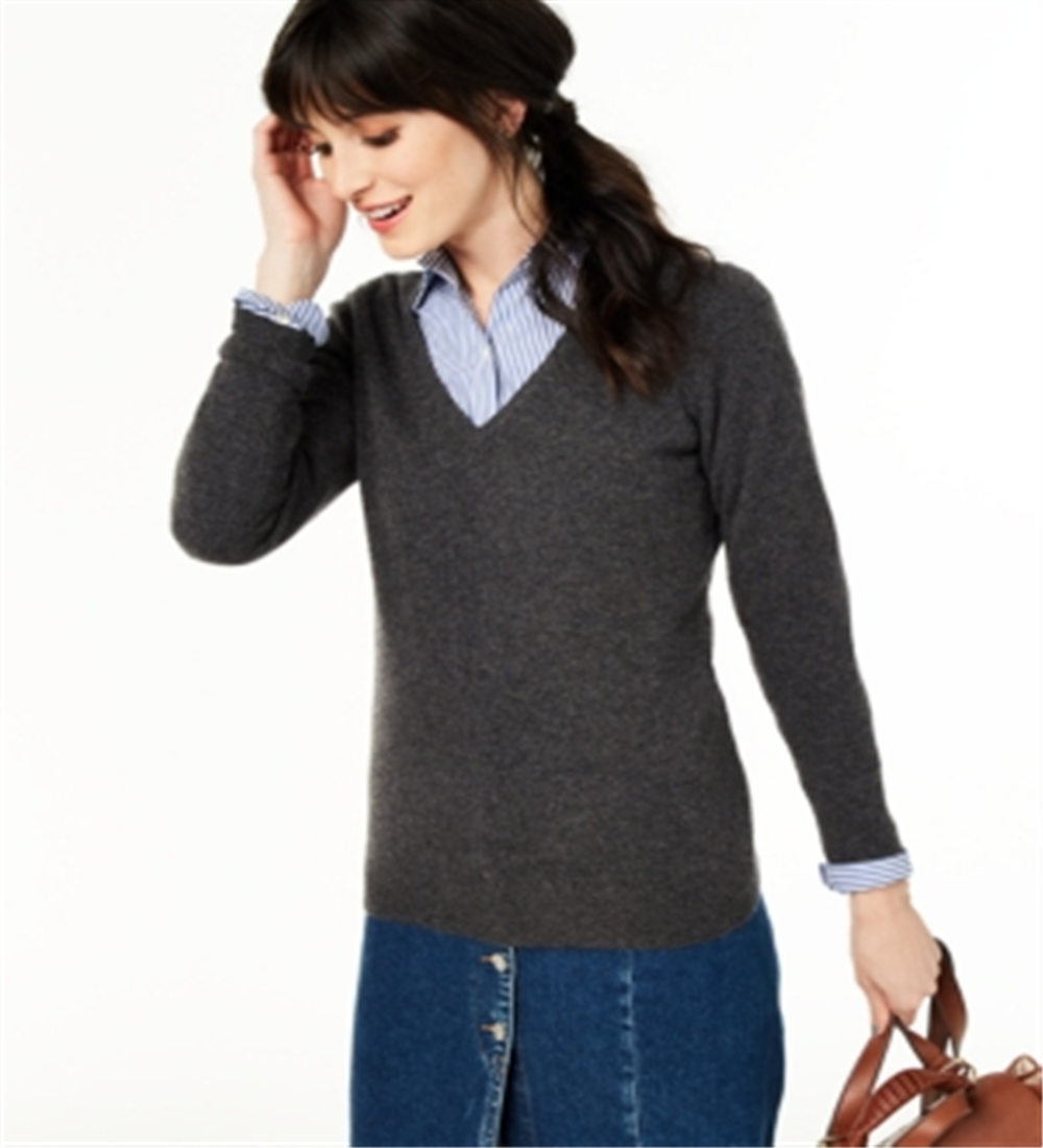 Charter Club Women's Argyle Cashmere Layered-Look Sweater Regular & Petite Sizes Black Size Small
