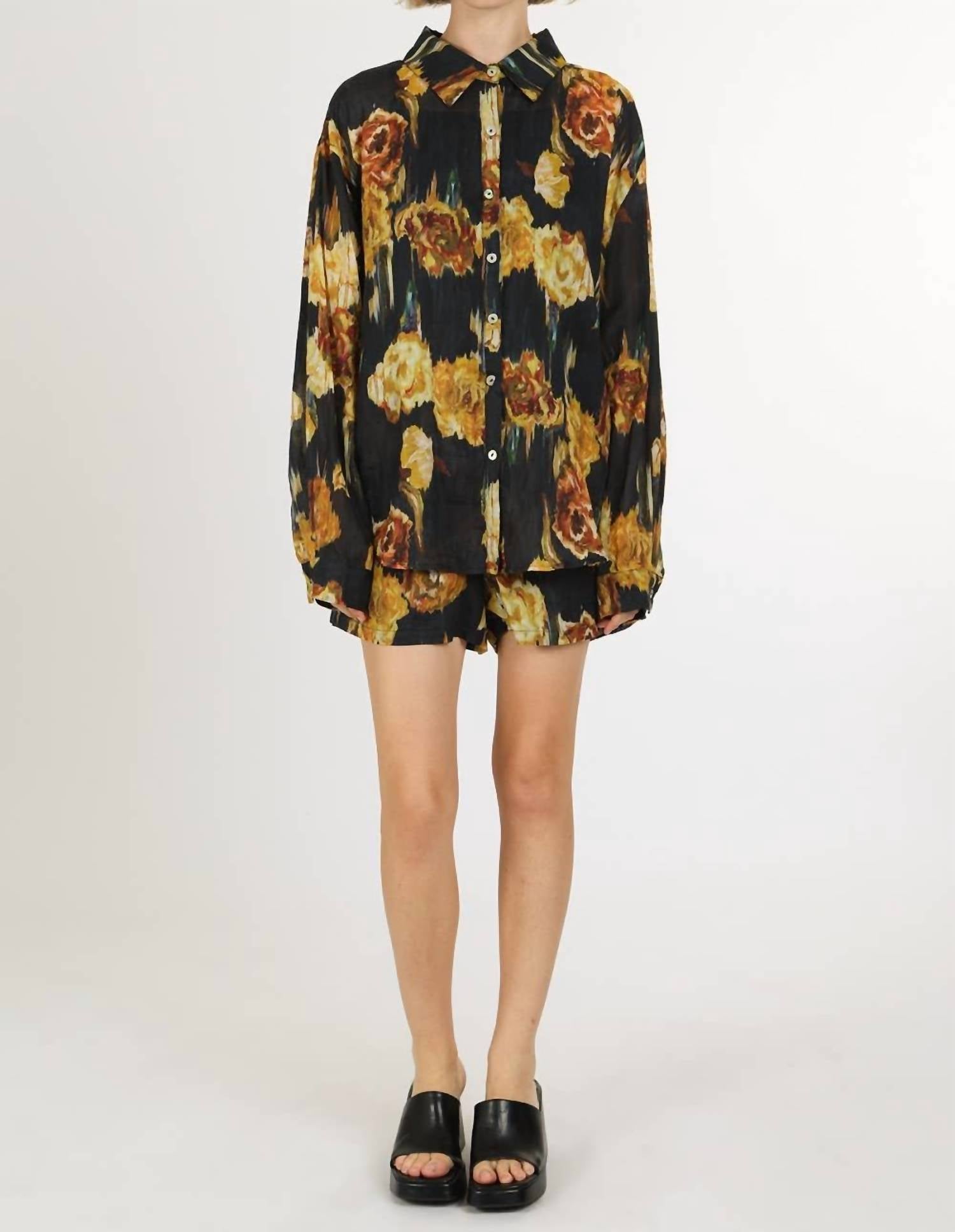 Introducing the Suri Abstract Floral Shirt and Shorts Set by BEULAHSTYLE, a perfect ensemble for your Spring wardrobe. Crafted from a breathable Linen Blend, this navy multi set features a stylish floral pattern. The shirt boasts long bishop sleeves with a standard collar and button closure, while the shorts offer a comfy pullover fit. Designed for both style and comfort, this imported set is ideal for holiday parties and more. Care: Machine wash to maintain its vibrant color and shape.
