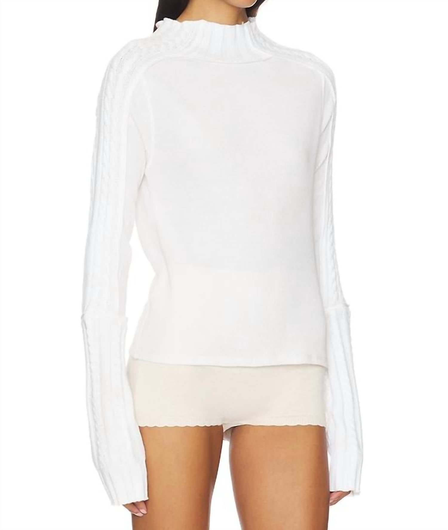 Embrace comfort and style with the Breezy Swit Top by Free People, perfect for those laid-back Thanksgiving gatherings. This long sleeve top in a cozy Ivory hue features a turtleneck offering a minimalist vibe with its solid cotton knit blend. Designed with a pull-on closure for easy wear, it's crafted with cable-knit trims and a comfy waffle base. Care: Hand wash to maintain its softness and structure.
