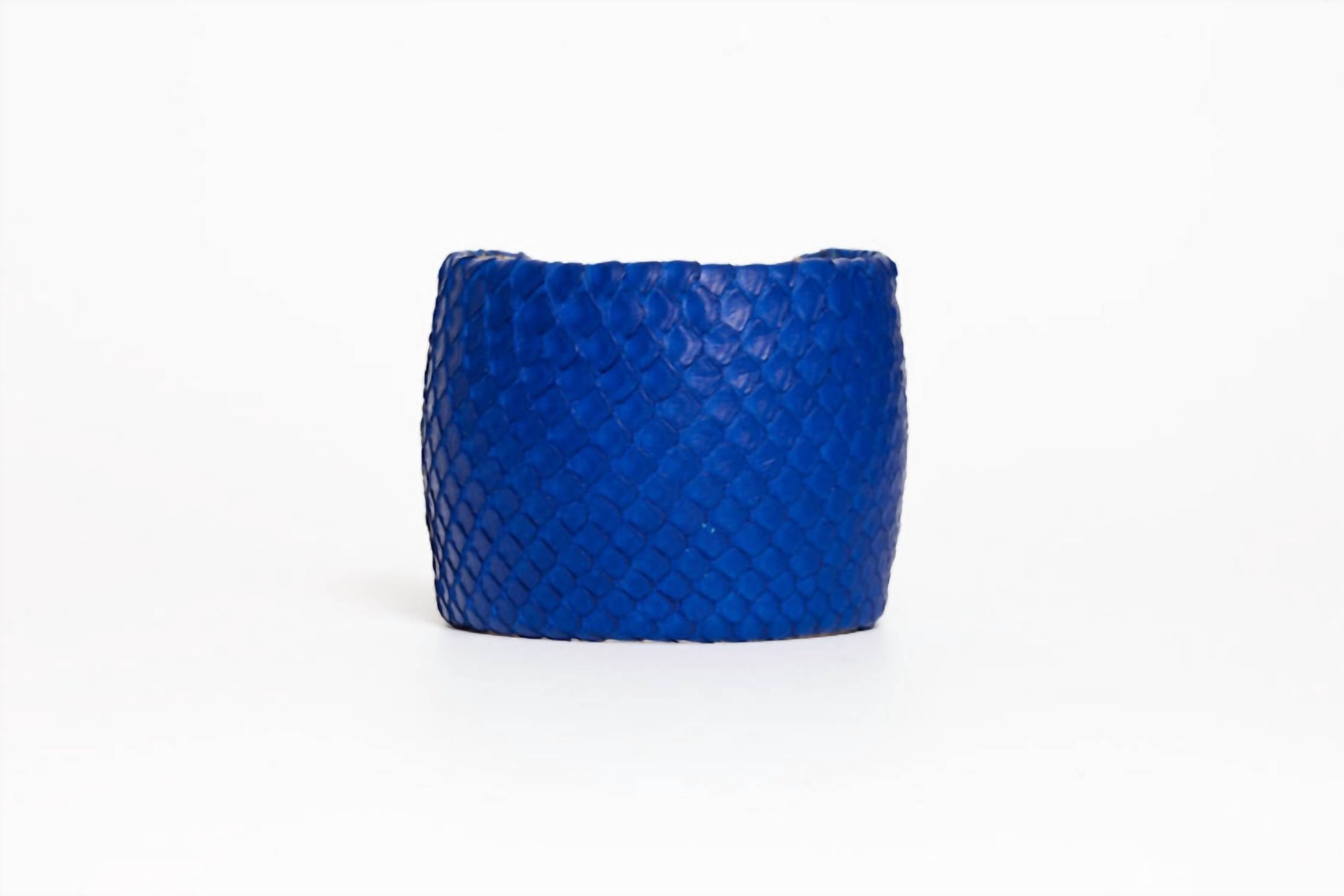 Crafted from genuine leather in sleek blue. Large bracelet from the fine jewelry collection is the perfect statement piece for any ensemble. Celebrate style and sophistication with this leather cuff designed for both elegance and durability.