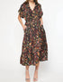 Introducing the Satin Printed Midi Dress by Entro, a charming addition to your summer vacation wardrobe in a wine hue. This fit and flare silhouette features a V-neck, short sleeves, and side pockets, providing both style and functionality. The dress showcases a patterned design with a collared neckline and an elasticized waist, enhancing the boho chic trend. Closure: Pull on. Care: Hand wash and line dry.