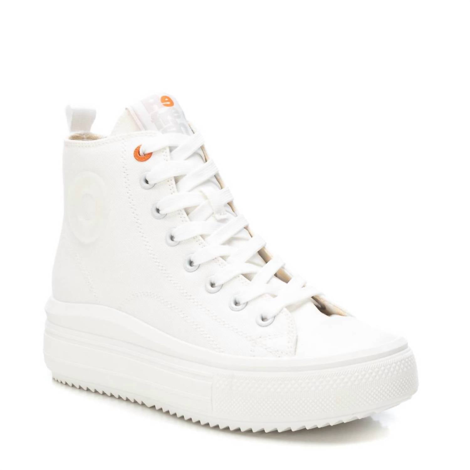 When fashion and function come together seamlessly. Introducing the Xti Women's High Top Canvas Sneakers in sleek hue, blending fashion with comfort effortlessly. Crafted from high-quality canvas, these sneakers feature a convenient side zipper closure for an easy fit and adjustment, combined with a Comfortech insole for added ease. The lightweight, anti-slip outsole promises stability, while the classic design ensures a timeless addition to your casual ensemble. Designed for adult women, these sneakers embody sophistication with a flat heel and round toe shape.