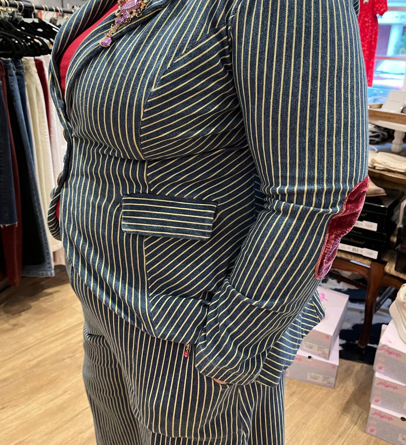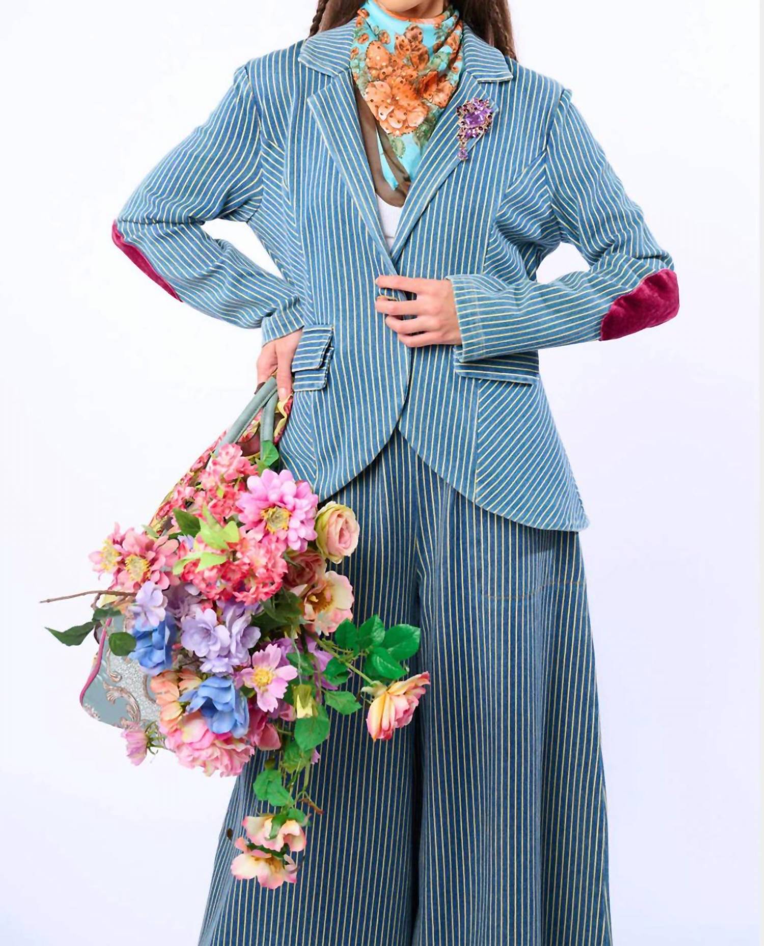 An elevated version of your favorite classic blazer. Elevate your wardrobe with the Aratta Alaia Striped Denim Blazer, perfect for an elegant evening event. This women's blazer combines a stylish striped pattern and long sleeves, showcasing a sophisticated 96% Cotton, 4% Spandex in a modern blue hue. Featuring functional front flap pockets and a secure button closure, this blazer is tailored for both convenience and style. Proudly crafted with a preppy trend in mind, it is easy to care for with machine wash instructions and should be laid flat to dry.