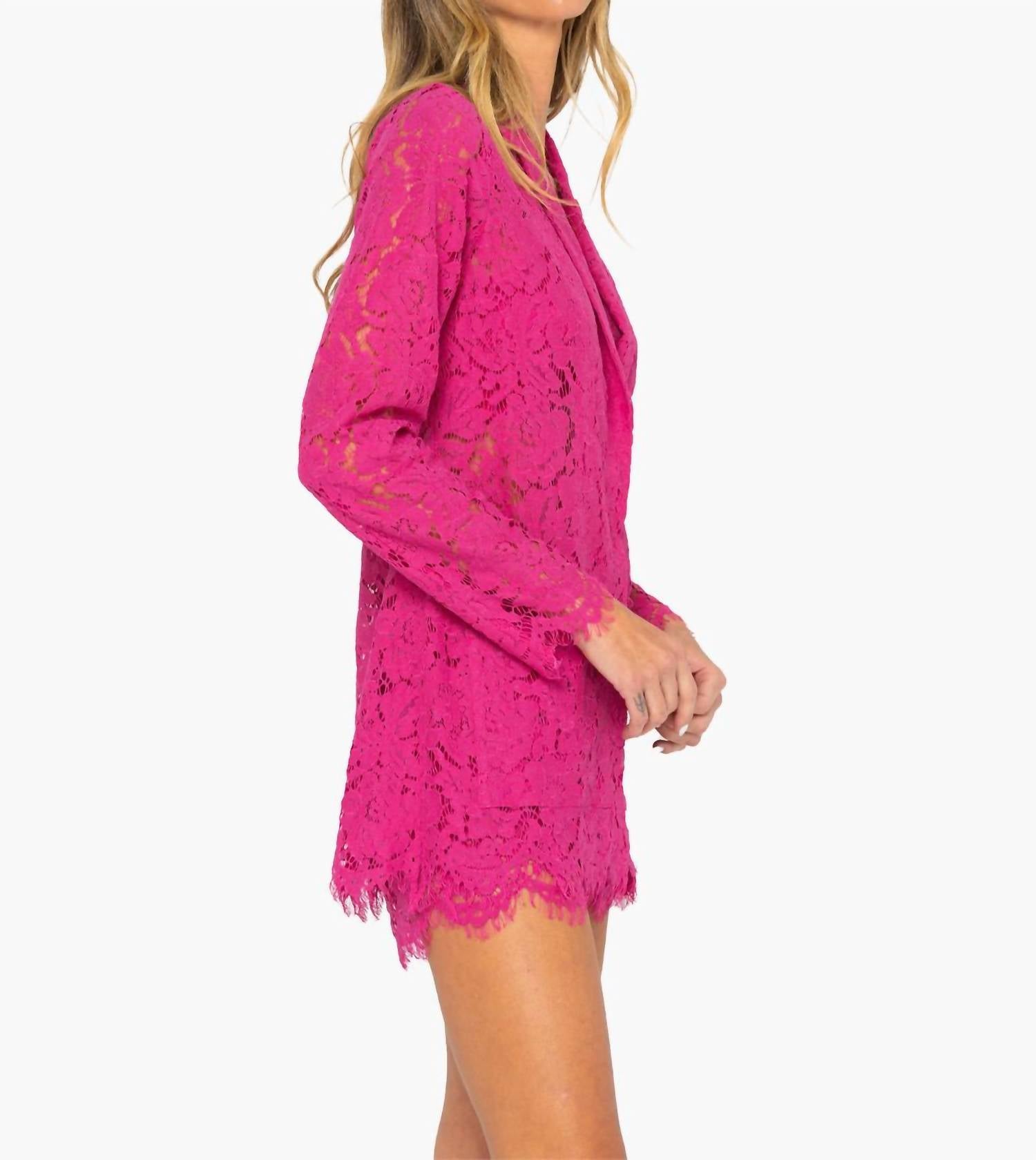 An elevated version of your favorite classic blazer. Elevate your wardrobe with the Emerson Blazer by JBQ, a statement piece in striking fuchsia. This tailored blazer features long sleeves and a classic collar, making it a versatile addition for any occasion. Crafted from 100% Viscose in the USA, it offers both style and quality. Enhanced with a button closure and functional pockets, it maintains a chic, structured fit. Machine wash.