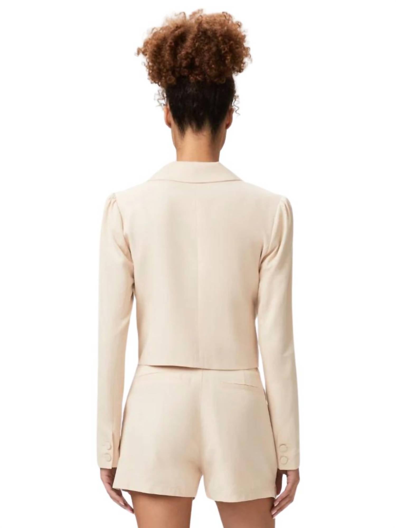 Tailored to perfection, this blazer will be your go-to jacket for years to come.Argentina Blazer features a cropped fit with a notch collar, double-covered buttons, and a hook-and-eye closure. Model is 5'10" and is a size 0. Gentle wash. 65% Lyocell, 35% Cotton