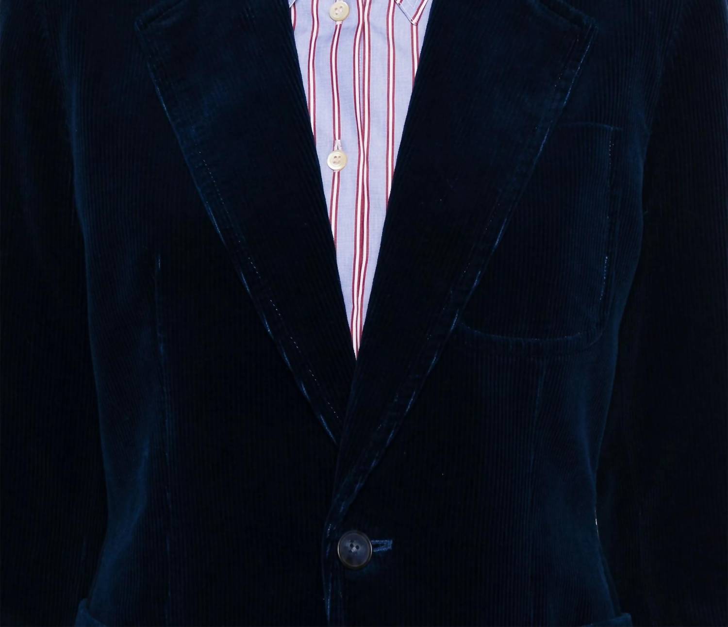 A blazer so versatile you can wear it to the office or pair it with jeans for a more casual look. Elevate your style with the Corduroy Blazer by Polo Ralph Lauren, a testament to refined craftsmanship in Indigo Blue. Featuring long sleeves and a length of 26.77 inches, this blazer is crafted from 100% cotton corduroy with a satin cupro lining. The design includes a front button closure, notched lapels, buttoned cuffs, and multiple patch pockets, complemented by an American rear vent. Care is straightforward with a machine wash.