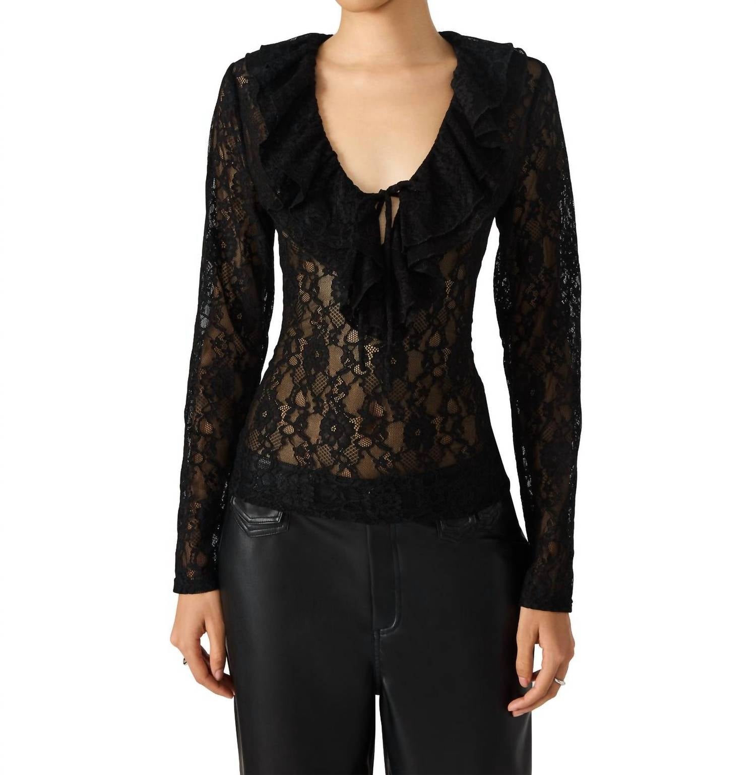 Bayeas - High Rise Wide Leg Jeans With Lace Spliced