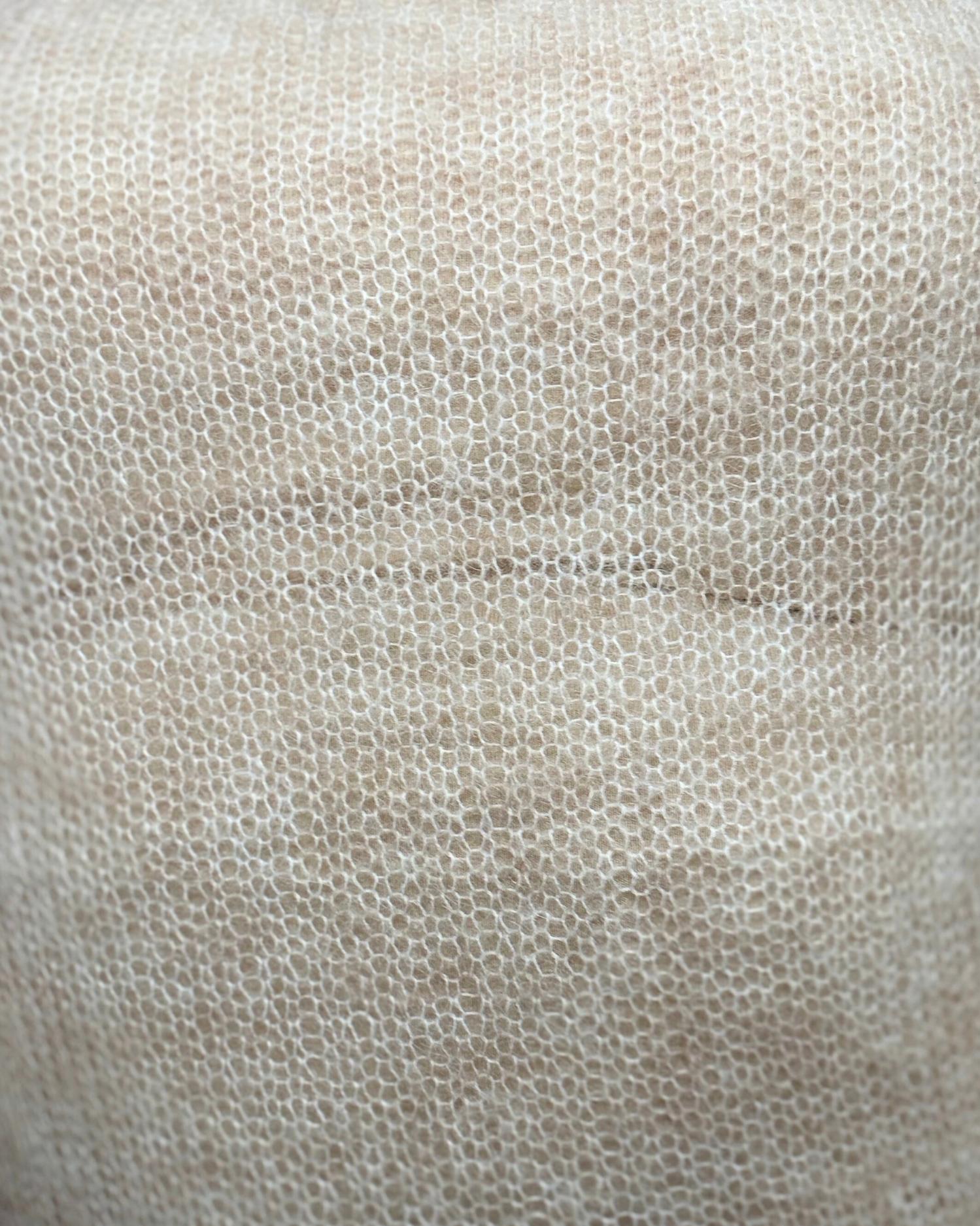 Pair this with your favorite jeans and slides for your next girls night out. The Ballet Topper by Brazeau Tricot in Clay is a sophisticated layering piece for women, perfect for fall occasions like Thanksgiving. Designed with three-quarter balloon sleeves and a scoopneck, it features a textured pattern in a luxurious nylon blend of 30% alpaca, 30% wool, and 40% nylon for a lightweight and sheer feel. Country of Origin: Not specified. Closure: Pull on. This versatile blouse offers effortless elegance and is perfect for rounding off a 90s fashion-inspired look.