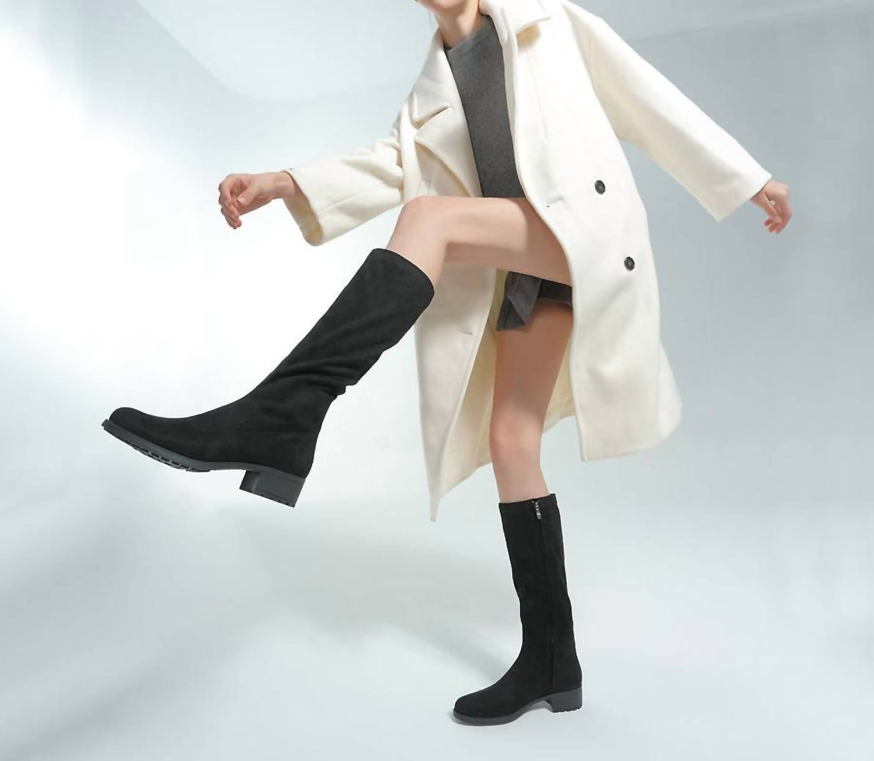 Minimalist elegance meets everyday comfort in these suede-style knee-high boots, designed with a refined silhouette and thoughtful support. Crafted with a soft elasticity suede cloth upper and lining, they feature a convenient side zipper, a subtle low block heel, and a multi-density shock-absorbing removable insole that cushions impact and relieves pressure from morning to night. Finished with a super-soft elastic rubber outsole for flexible, natural movement, they’re perfectly balanced with a 14.96" shaft height, 1.57" heel, and 0.59" platform—ideal for chic city styling and casual winter wear alike.