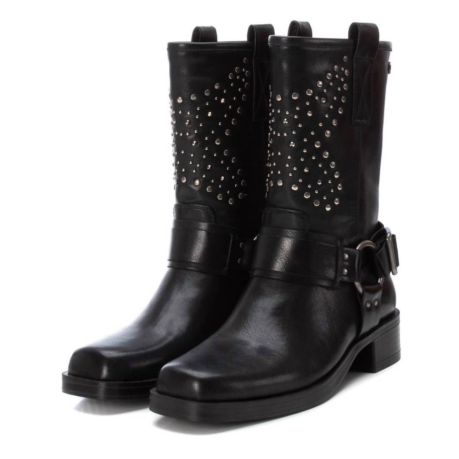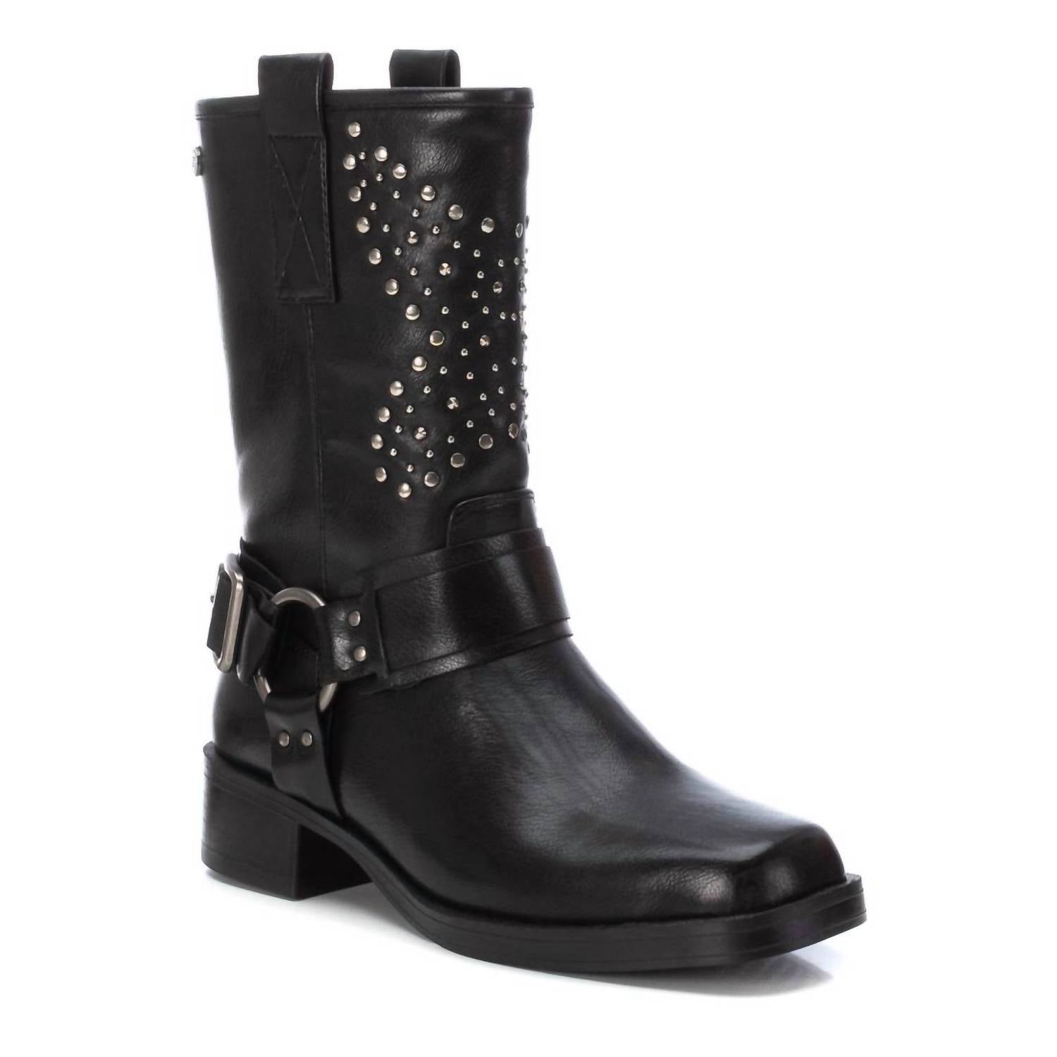 The moto boot trend is here to stay and we especially love this style. Step up your style game with the Women's Biker Boots by Xti, offering a perfect fusion of casual comfort and chic design in classic color. These boots feature a 1.57-inch block heel and a squared toe, crafted from faux leather. Highlighted by a stylish side zipper, decorative buckle, and metallic details, they rest on a lightweight, durable non-slip rubber sole. The interior boasts a padded insole for superior comfort, ensuring these high-quality boots become a staple in your wardrobe.